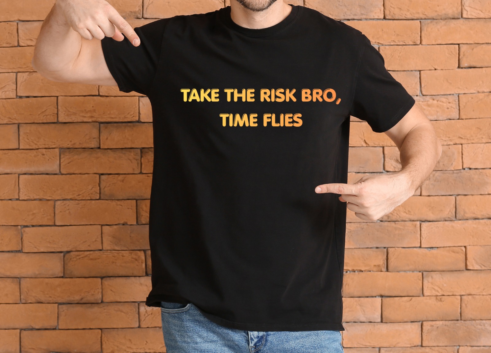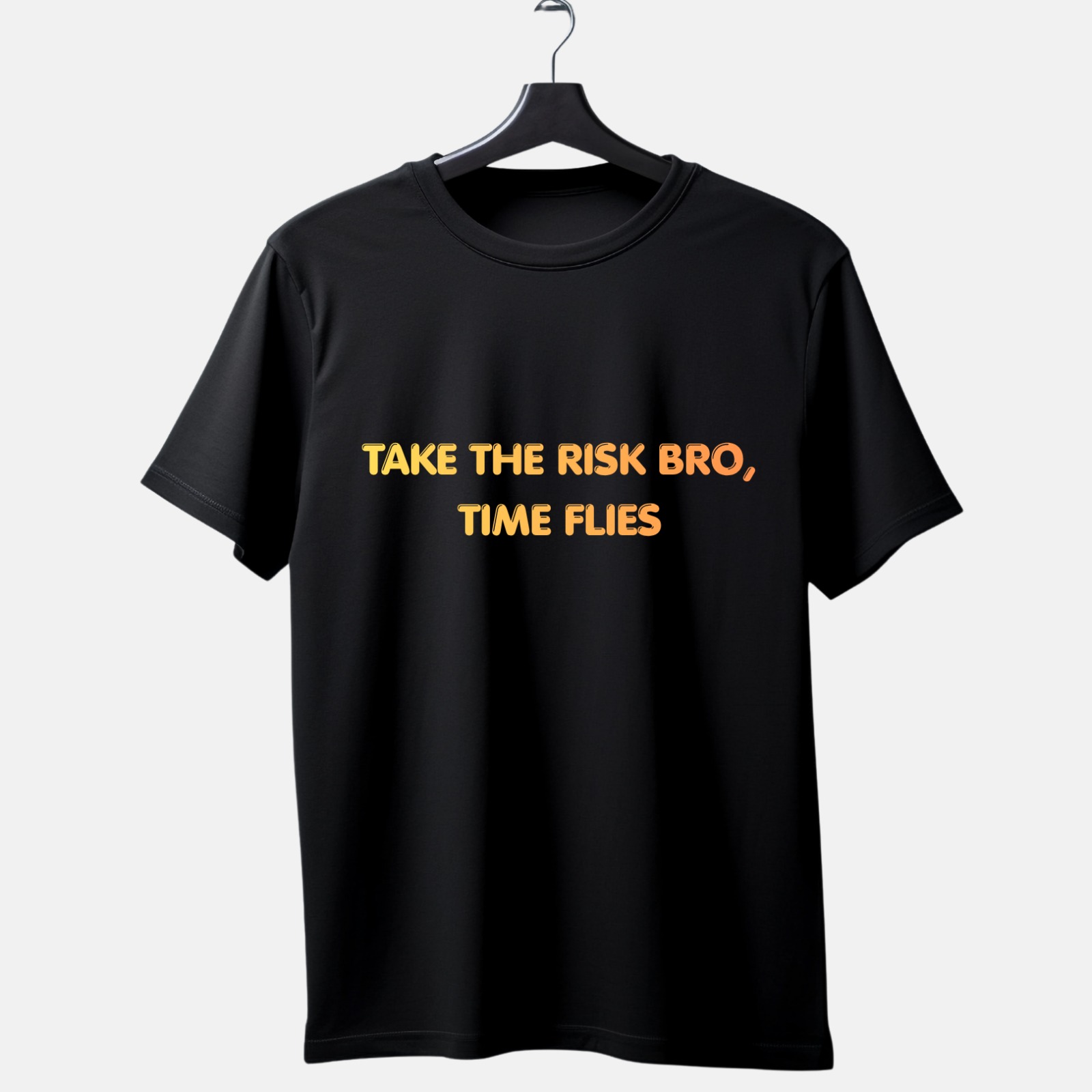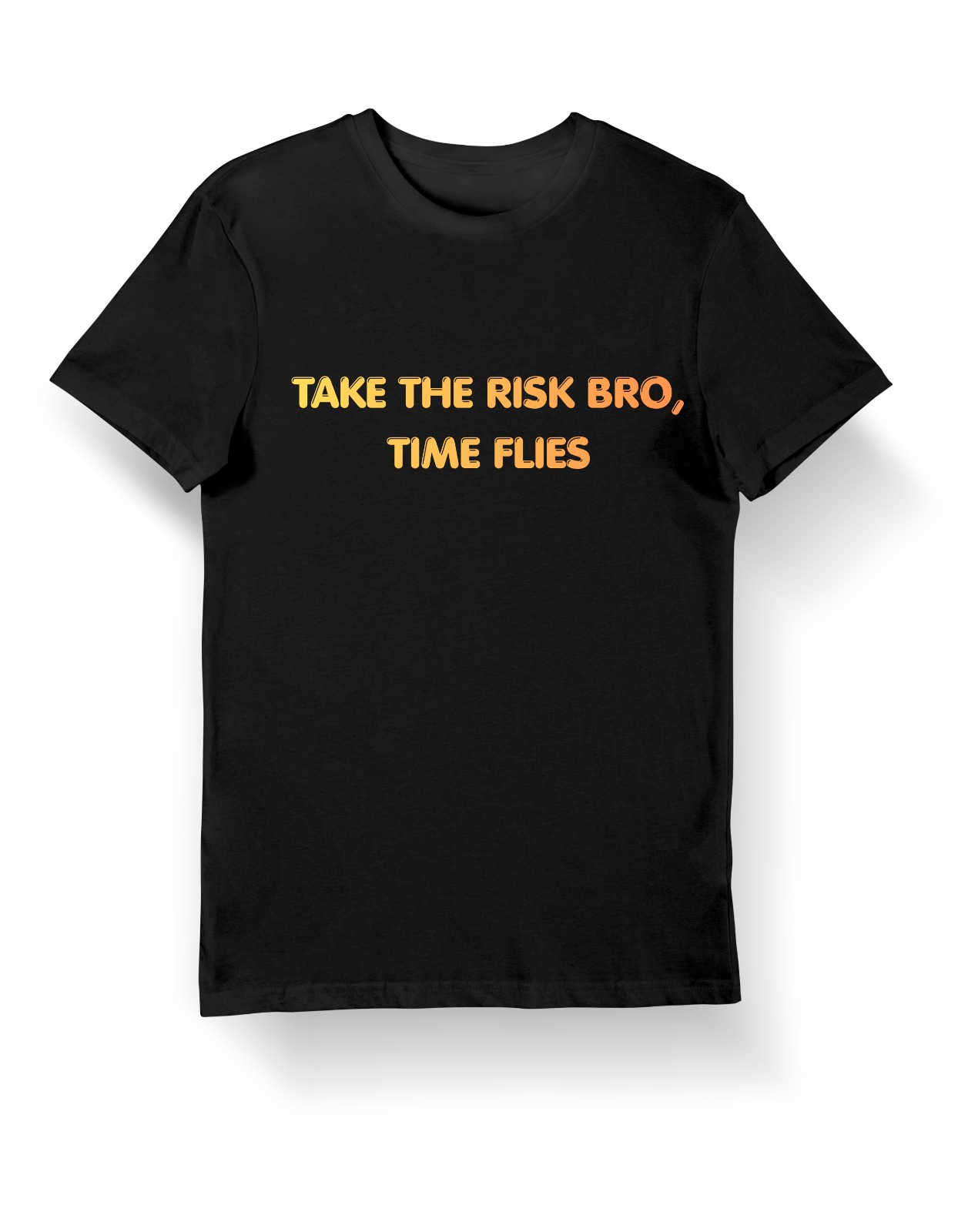 Clean typography with a bold yellow-orange tone on a black base gives it a strong, eye-catching look without being too loud. Easy to wear, easy to style, and makes a statement without trying too hard.